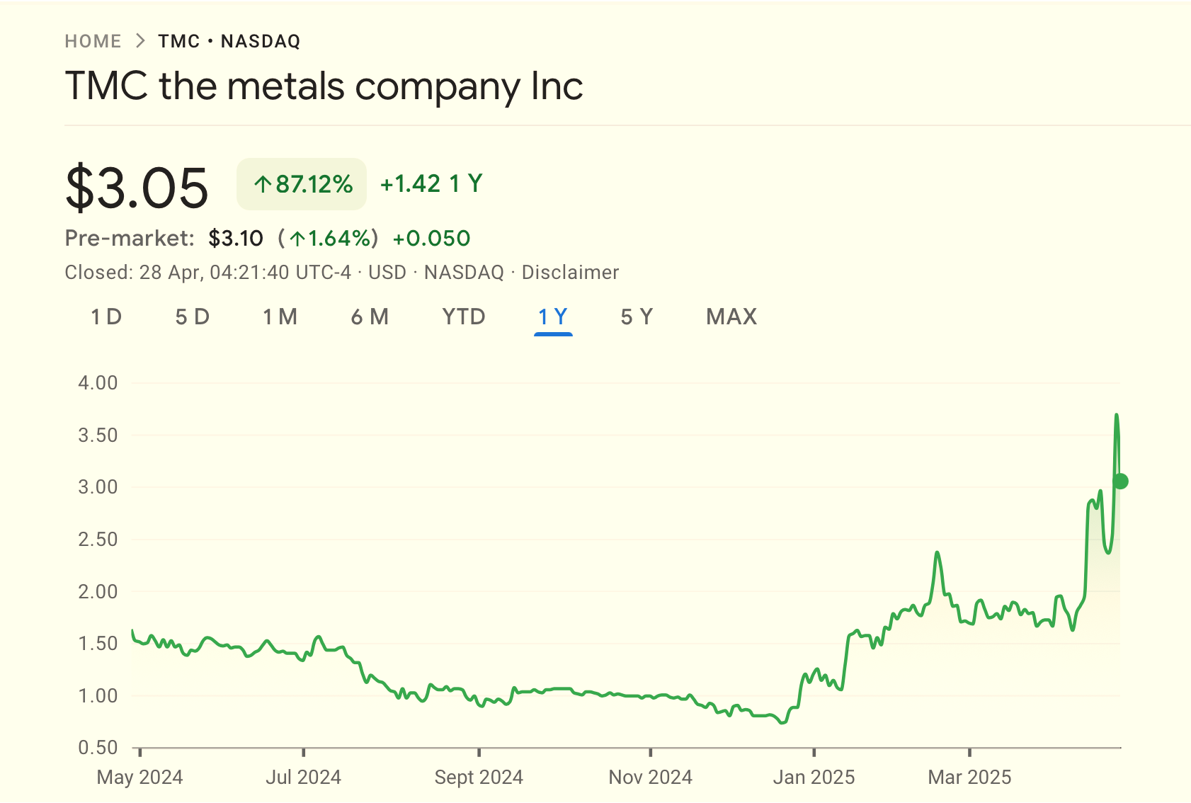 The stock surged at close of trading last week following US president Donald Trump's executive order to permit deep sea mining.
