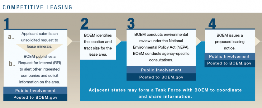 Crucially, anyone or any agency can submit information to BOEM once it publishes a request for information, including the public. And the leasing procedure is clear: